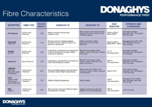 The Leisure Marine Fibre Characteristics Chart highlights the particular qualities of the various fibres used in the construction of Donaghys Leisure Marine range.