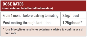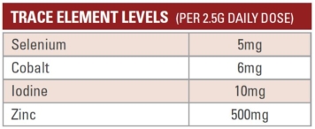 A powdered mineral supplement containing 4 essential trace elements formulated for dairy cows to promote health and production.